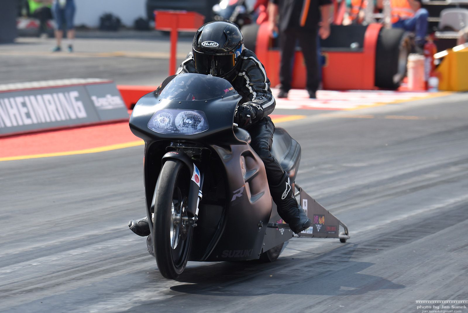 En catégorie Pro Stock Bike, Jérôme pilote un 1570 GSX.